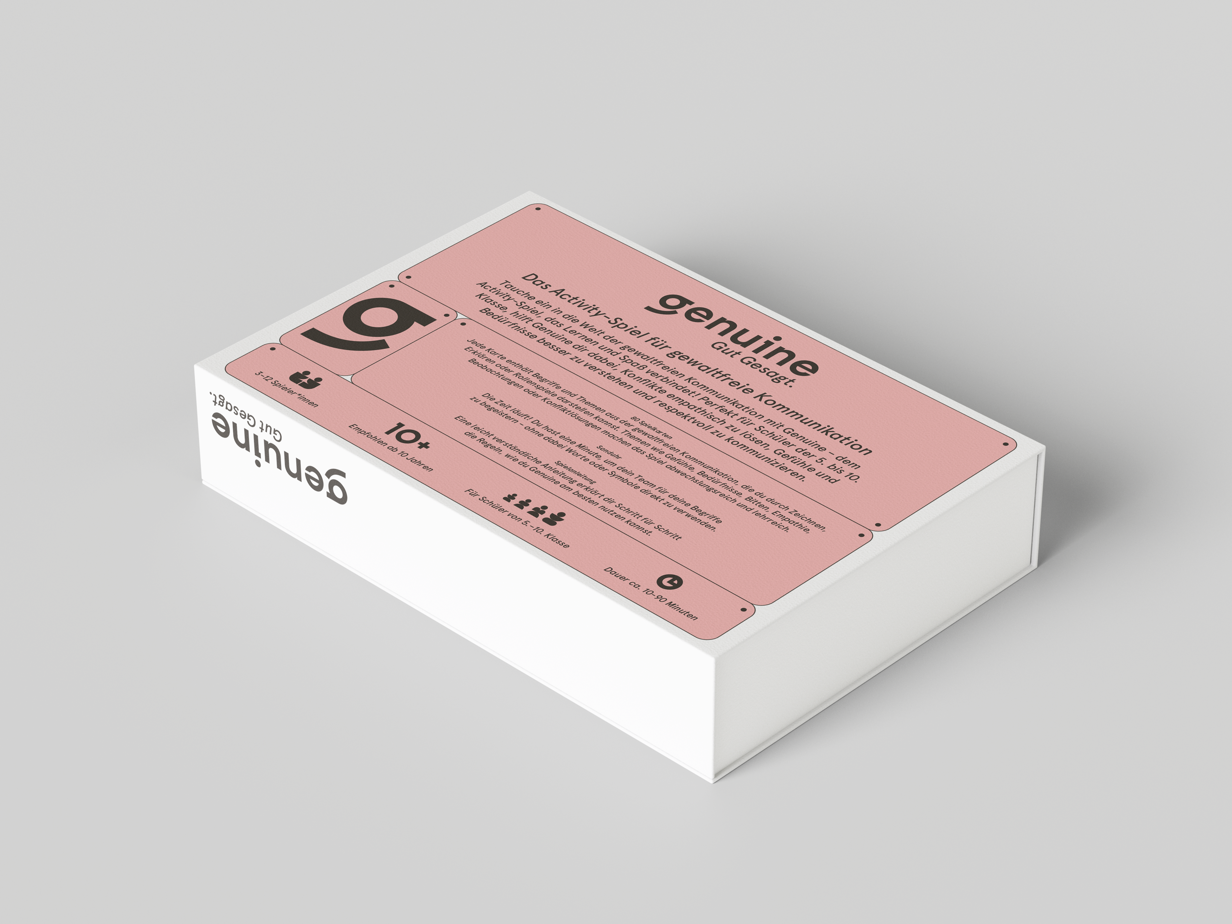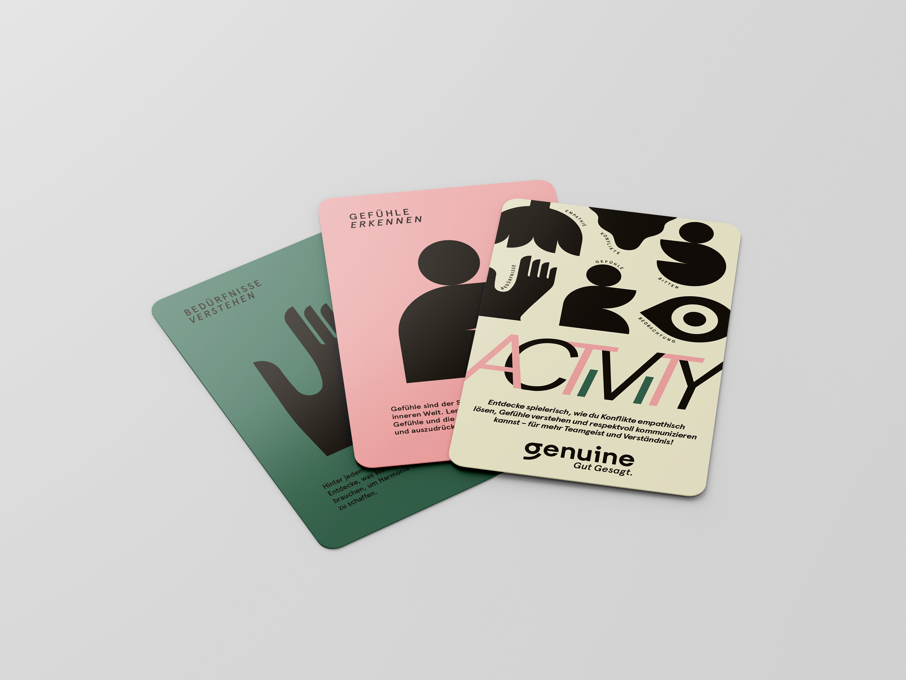 Das Logo von genuine setzt auf eine klare Typografie, die Offenheit und Direktheit vermittelt – ganz im Sinne der Gewaltfreien Kommunikation. Das „g“ erinnert an ein halbes Smiley und verleiht dem Logo eine subtile emotionale Ebene: freundlich, positiv und einladend, ohne ins Verspielte abzurutschen. Dieser Balanceakt – zwischen Ernsthaftigkeit und Leichtigkeit – spiegelt den Kern des Projekts wider.