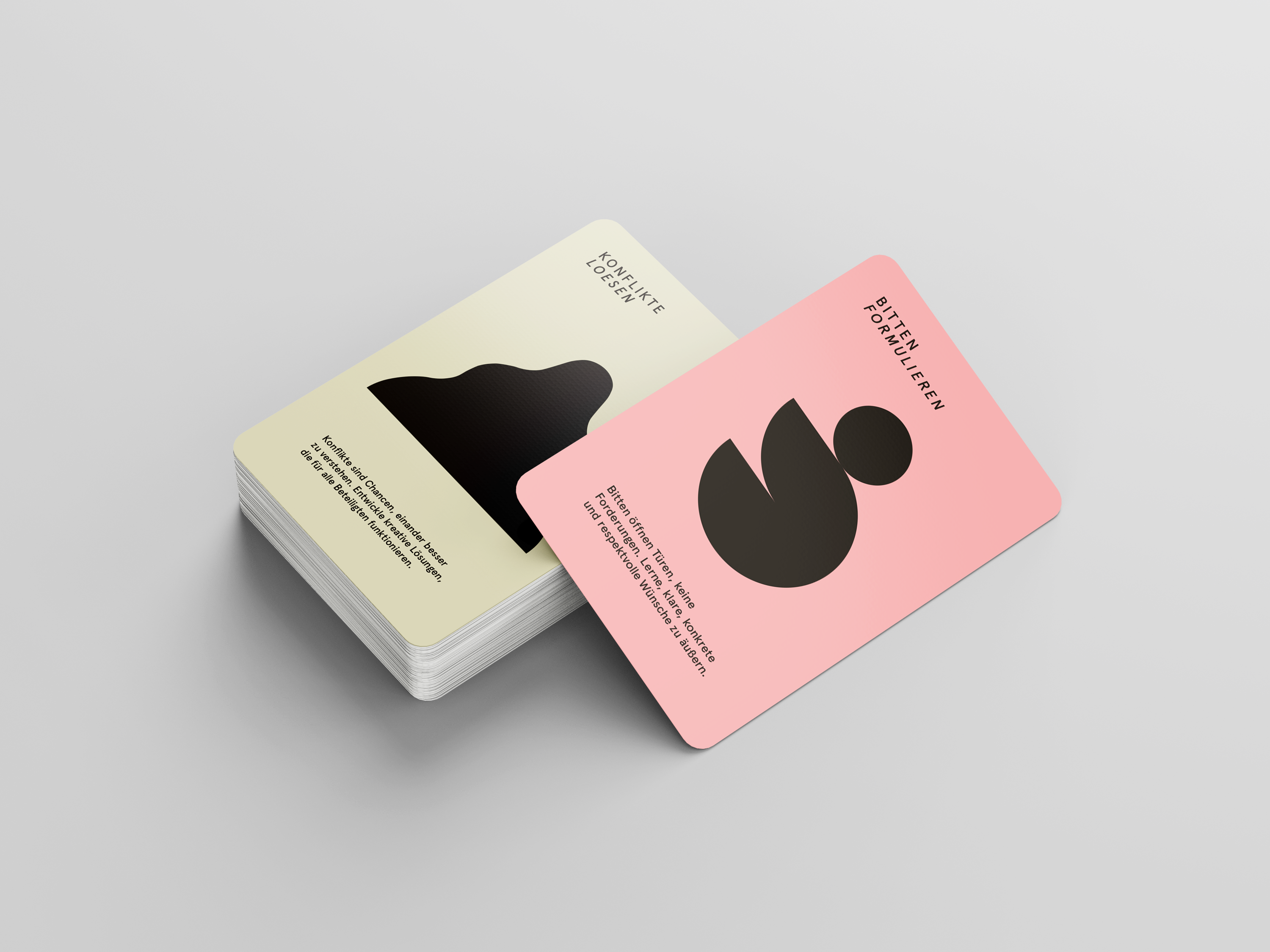 Besonderes Augenmerk lag auf der Gestaltungssprache: Die Karten mussten so reduziert und klar sein, dass sie auch in dynamischen Spielsituationen sofort verstanden werden, gleichzeitig aber nicht steril wirken. Farbe, Typografie und Bildsprache sollten Jugendlichen das Gefühl geben: „Das ist für uns gemacht“ – ernsthaft, aber ohne pädagogischen Zeigefinger.